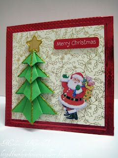 Here I am with a post of two Christmas greeting cards with folded Christmas tree. Here is the first card.